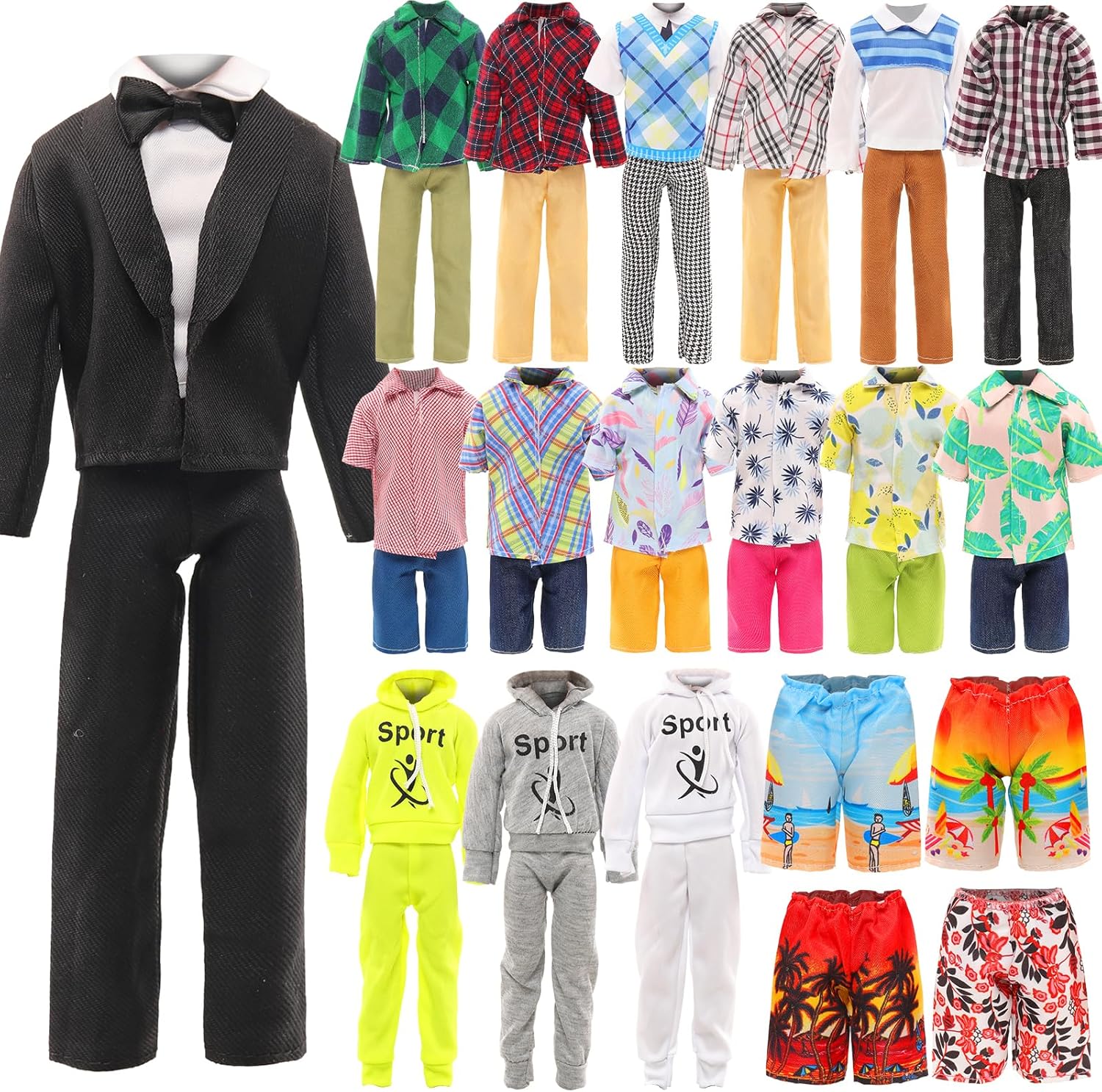 Package includes = 1 suit, random 2 tops, random 2 pants, random 1 tracksuit, random 1 tracksuit, swimming trunks, 5 pairs of shoes. (DOLLS ARE NOT INCLUDED.) Suitable for Various Doll - Size fit for 12 INCH Boy Doll. 5 variety doll clothes with 5 pairs of doll shoes can satisfy your kids dressing fun, they can match their doll with different style according to different scene, it can help develop children's thinking ability and hands-on ability at the same time. Assure Safety-All items and materials are triple checked for sewing quality, exquisite workmanship, feel comfortable. Exquisite Gifts - Doll accessories are well made and quite cute.The children will love them.Perfect as a Xmas gift, Birthday gift, New Year gift. Kids' happiness is our passion to move ahead.