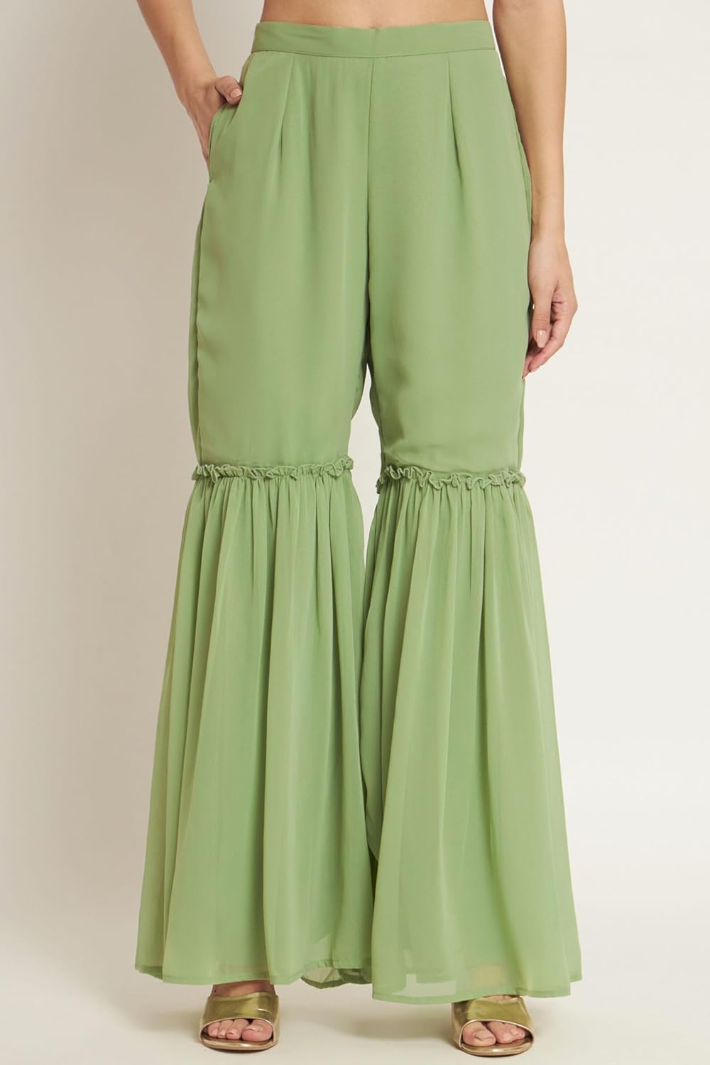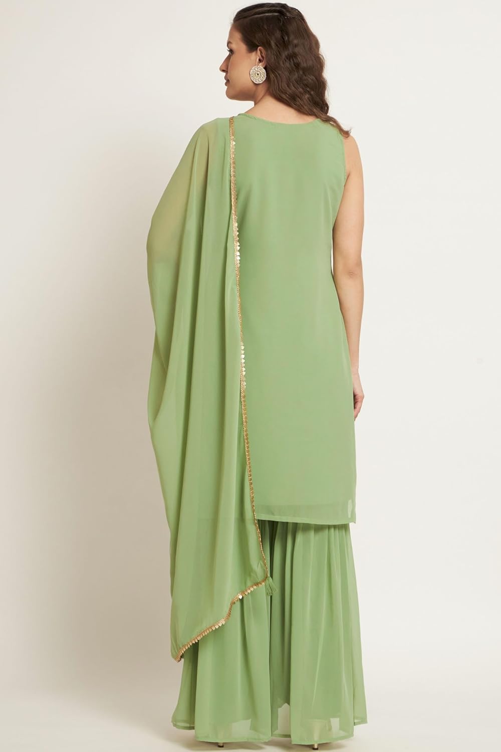 Women's Georgette Embroidery Straight Kurta and Sharara Set