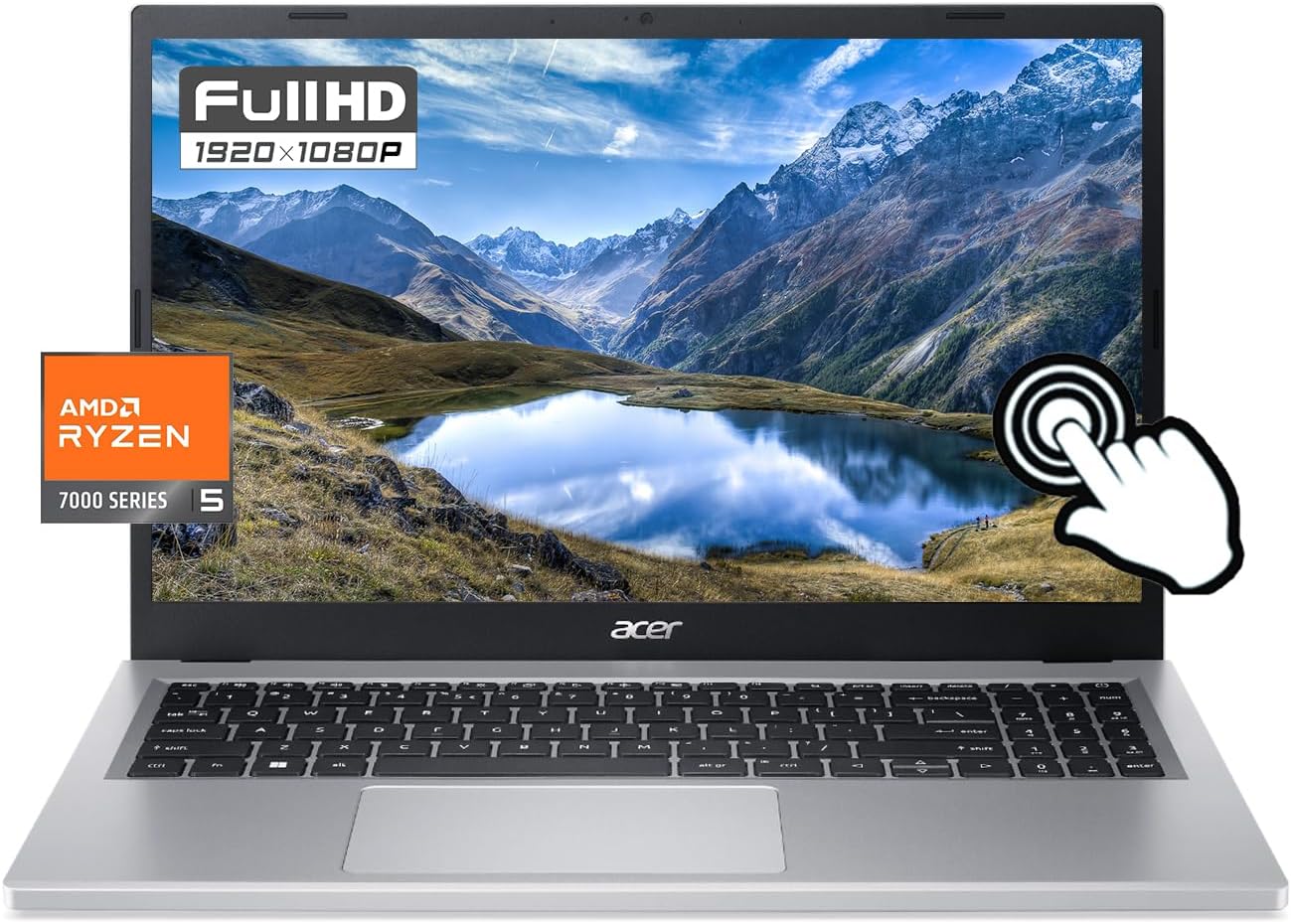 Laptop Acer Aspire 3 con pantalla táctil FHD de 15,6", 2023, más reciente, LPDDR5 de 16 GB, SSD de 1 TB, procesador AMD Ryzen 5 7520U de cuatro núcleos, WiFi 6, Bluetooth 5.2, cámara web HD, HDMI, plateado, Windows 11, accesorio GM
