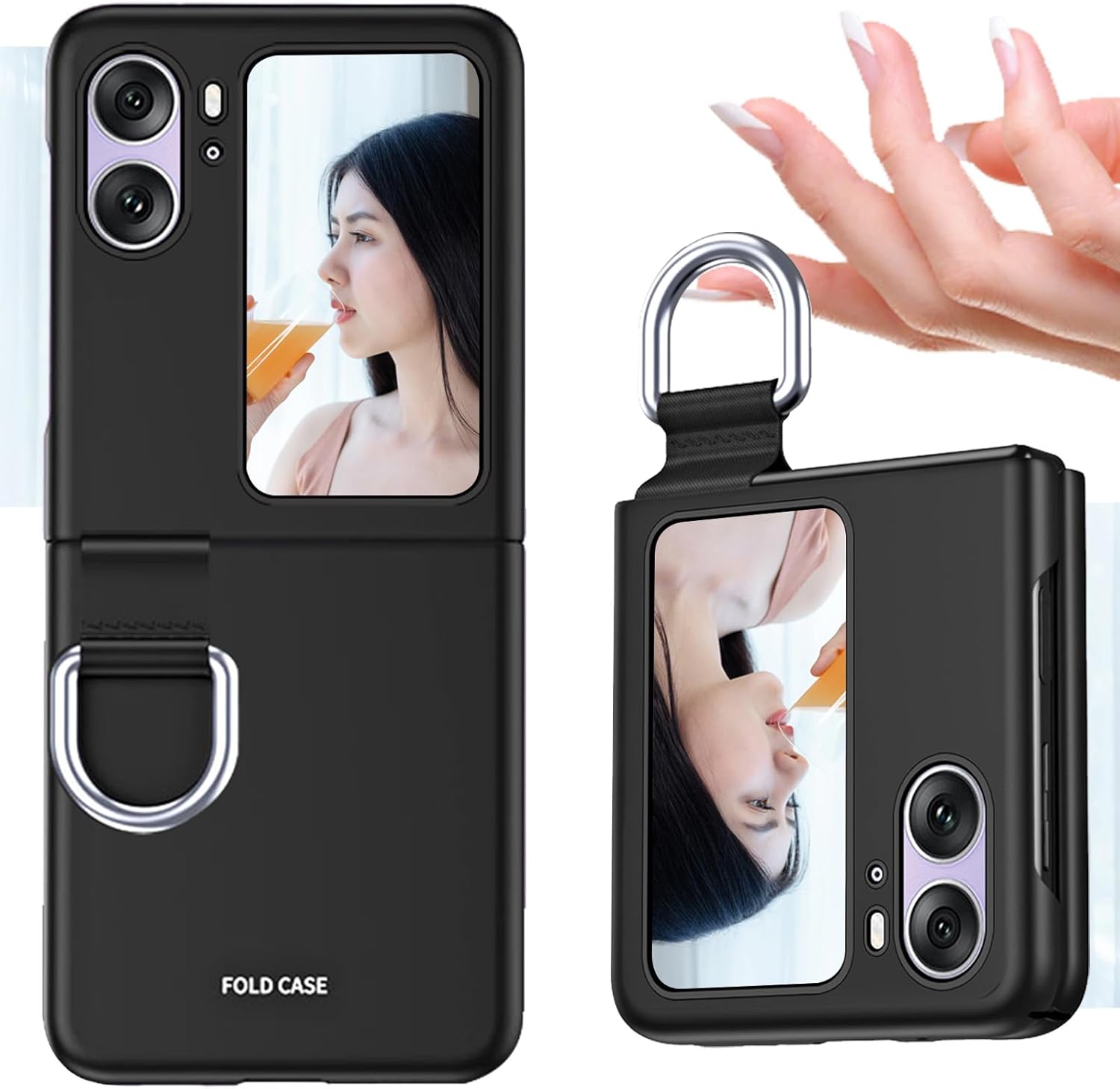 CCSmall for Oppo Find N2 Flip Case with Ring, Slim Thin Matte Hard PC Shockproof Protective Phone Cover Case for Oppo Find N2 Flip QZH Black