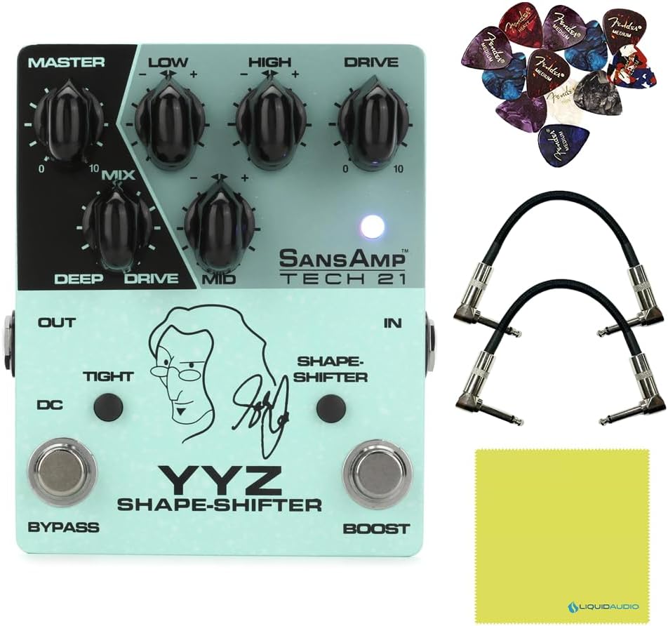 Tech 21 YYZ-SH Geddy Lee Shape-Shifter Signature SansAmp Pedal Bundle w/ 2x Strukture S6P48 Woven Right Angle Patch Cables, 12x Fender Picks and Liquid Audio Polishing Cloth