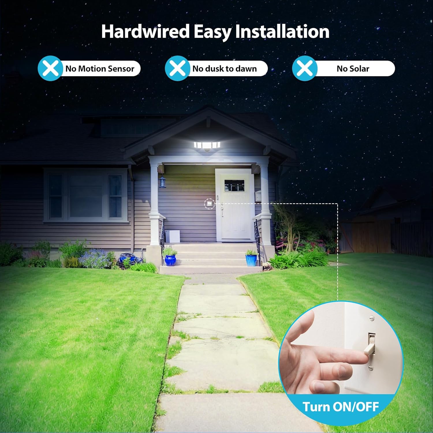 Effortless Setup: Mounting this wired light to a junction box is a breeze with just a few simple wiring steps. It can be swiftly installed outside under the soffit or conveniently mounted under the corner of your roof. This outdoor LED floodlight can only be controlled through a wall switch, allowing for easy switching on and off