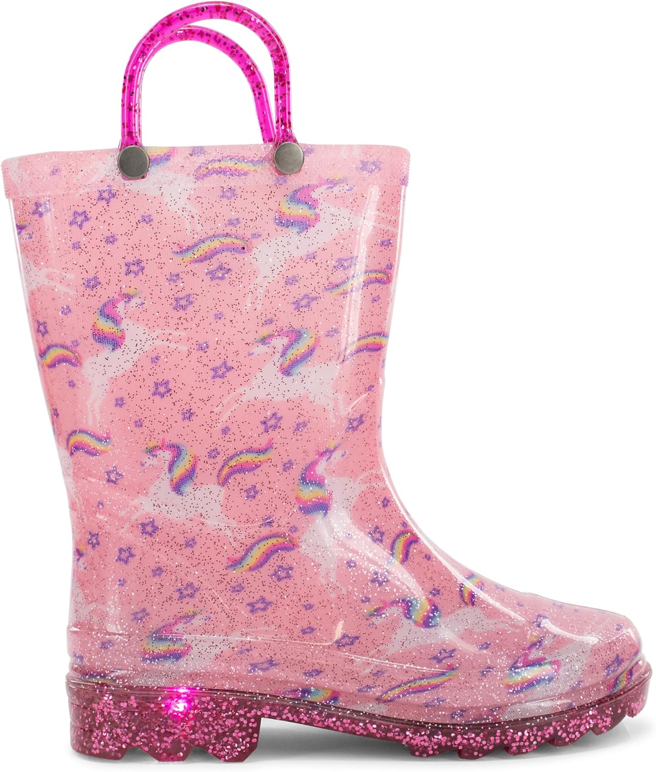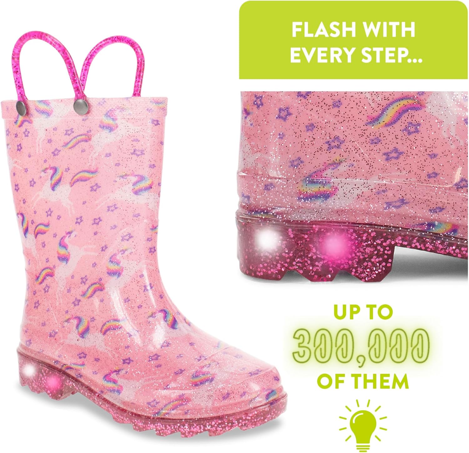 Western Chief Kids Waterproof Light Up Rain Boots With Handles for Easy On and Off for Boys and Girls