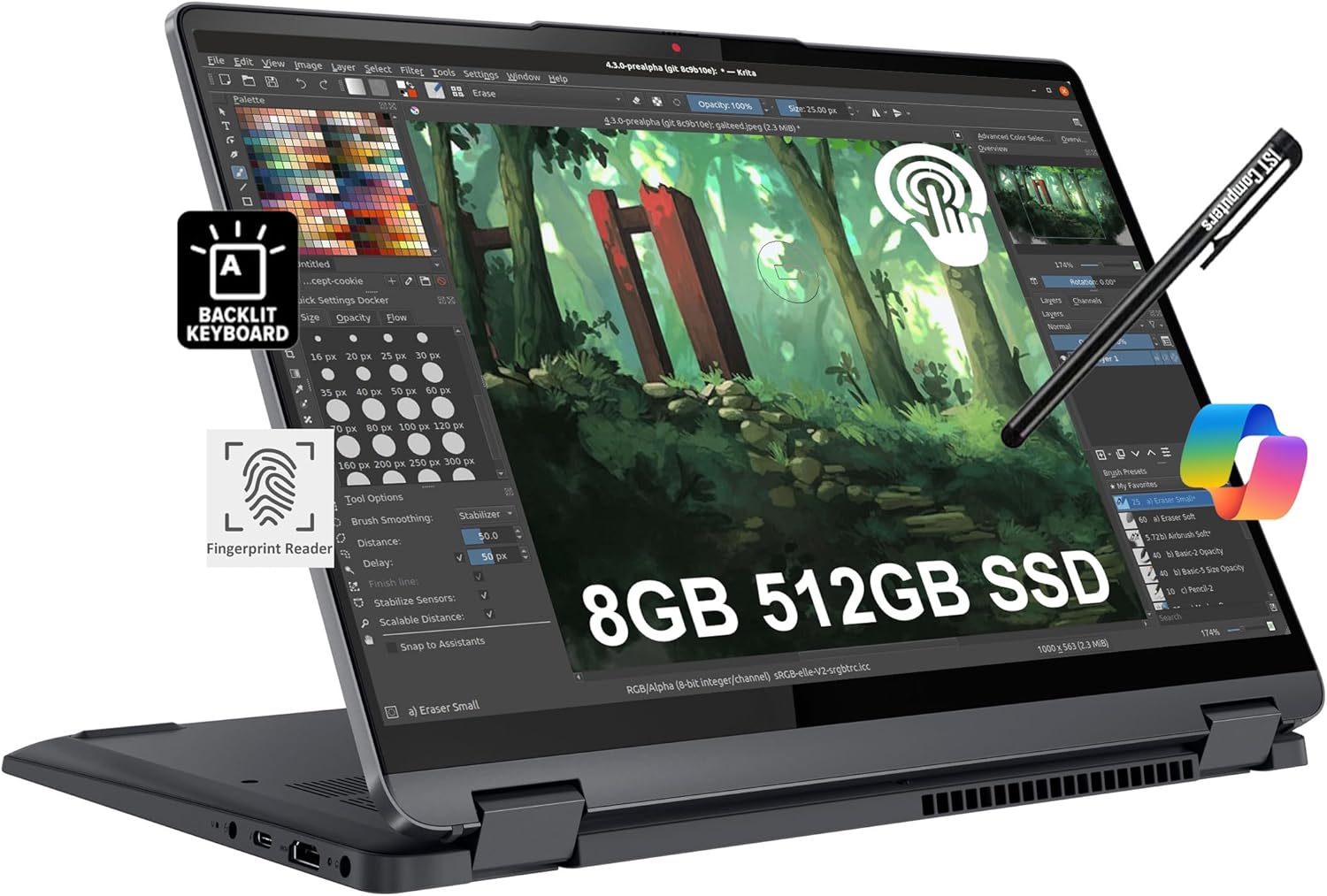 Lenovo IdeaPad Flex 5i 2-in-1 Laptop (14" FHD+ Touchscreen, Intel Core i3-1215U, 8GB RAM, 512GB SSD) Convertible, Fingerprint, Backlit, FHD Webcam, 9-Hr Battery Life, IST Pen, Win 11 Home S Mode