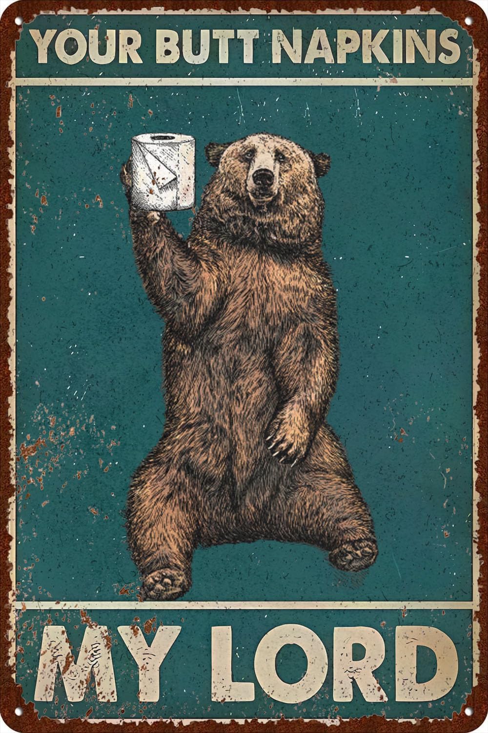Metal Tin Sign - Bear your butt napkins my lord Wall Decor Bar Club Novelty Funny Bathroom Toilet Paper Retro Cafe Store 8x12 Inch