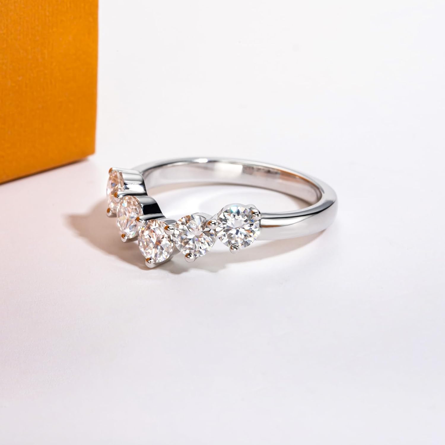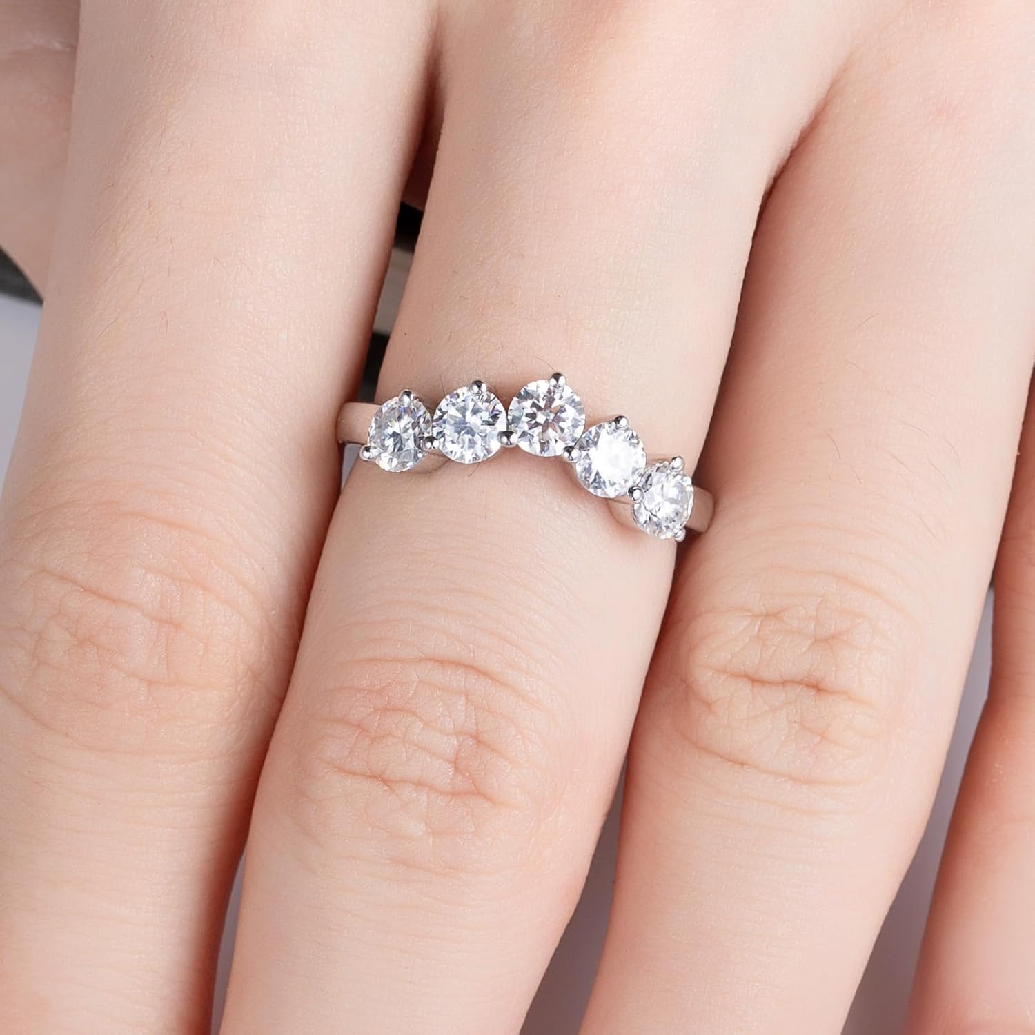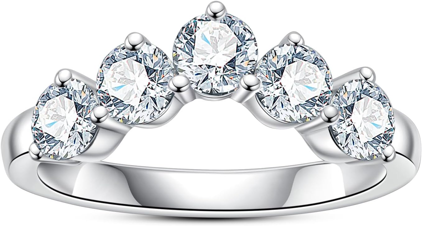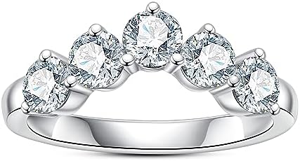 Moissanite Eternity Rings Wedding Bands D Color VVS1 Clarity Round Brilliant Cut 925 Sterling Silver 5/6 Stones Anniversary Band Rings for Women with Certificate