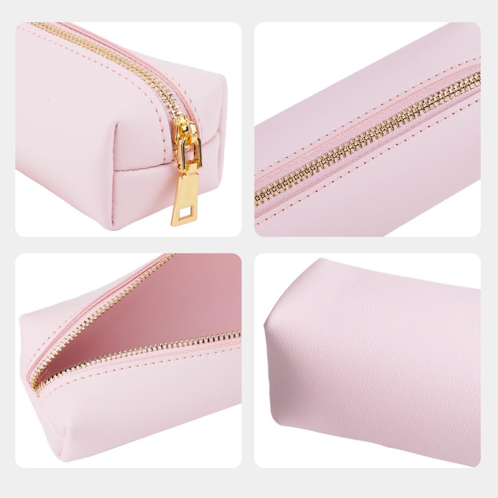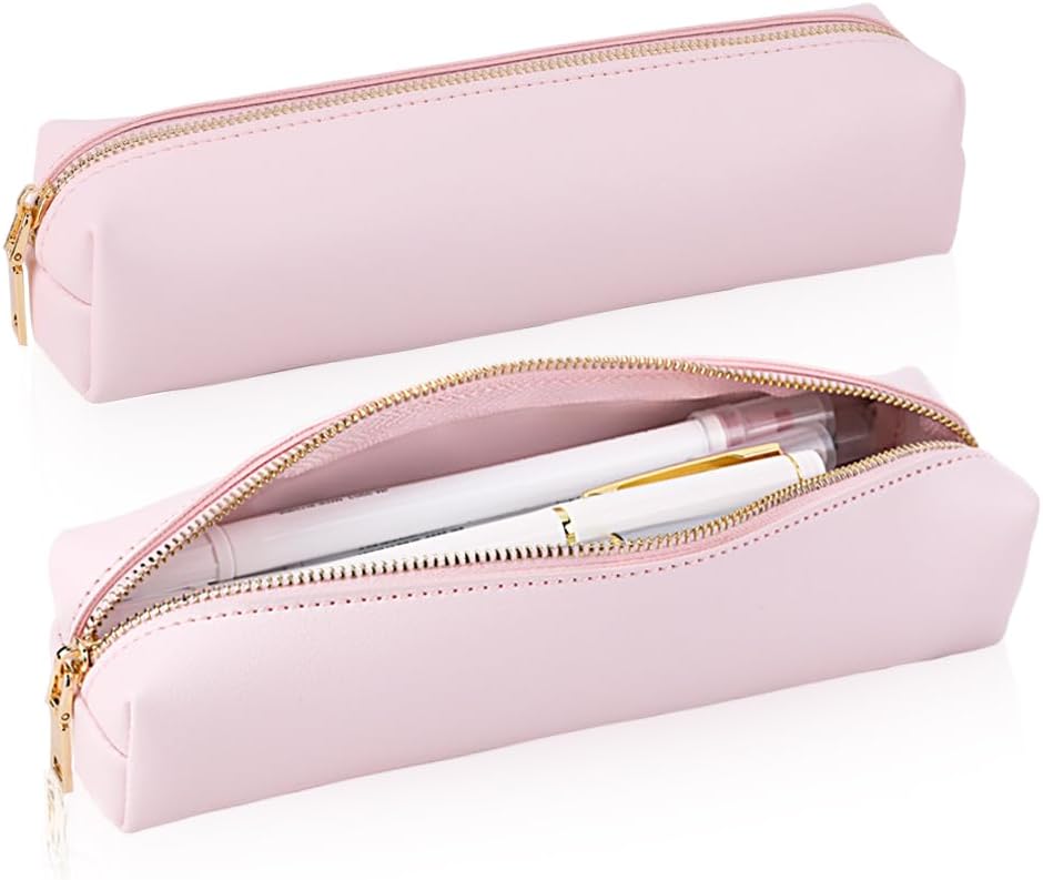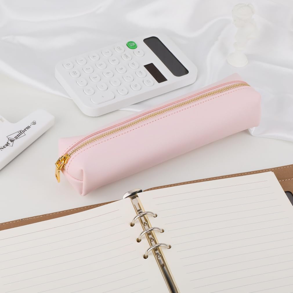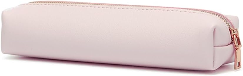 iSuperb PU Pencil Case Leather Pen Bag Slim Pencil Pouch Lovely Stationery Bag Portable Cosmetic Bag Zipper Organizer Bag (Pink)
