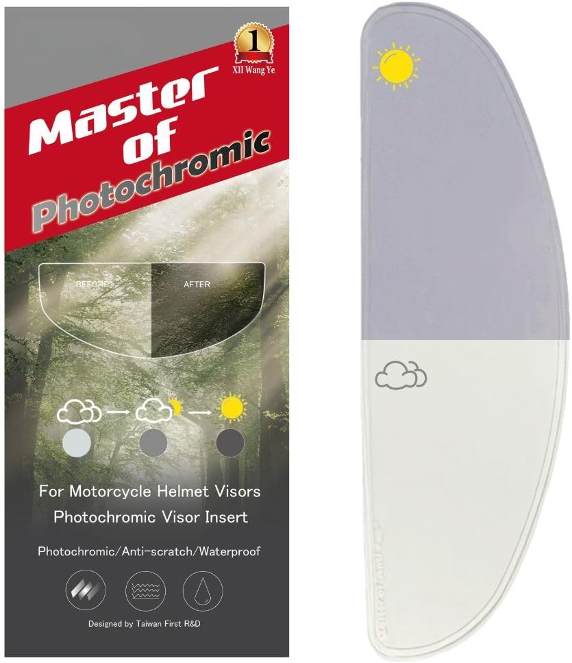 Responsive and Durable Design: This visor insert is coated with a light-sensitive substance, offering a unique color reaction that varies with sunlight intensity. Its durability and responsiveness differ based on the helmet shield brand, providing a tailored experience.PLEASE NOTE some visor lens have UV proof function may cause the photochromic film NOT work properly.