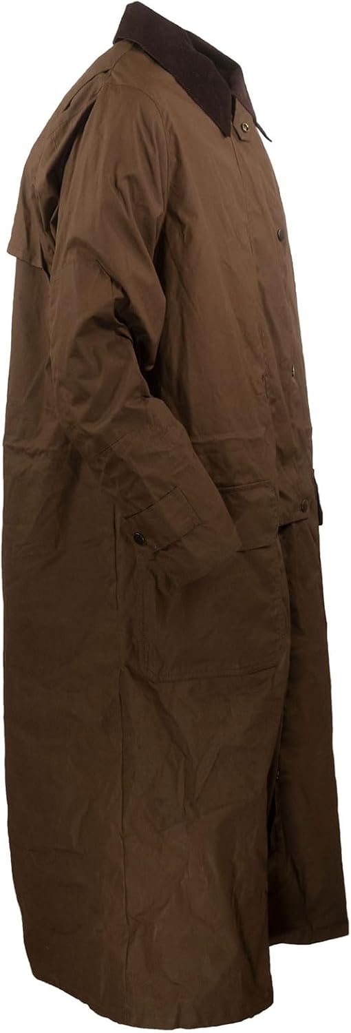 Outback Trading Company mens Wax Cotton Waterproof Breathable Long Western Duster With Multiple Pockets