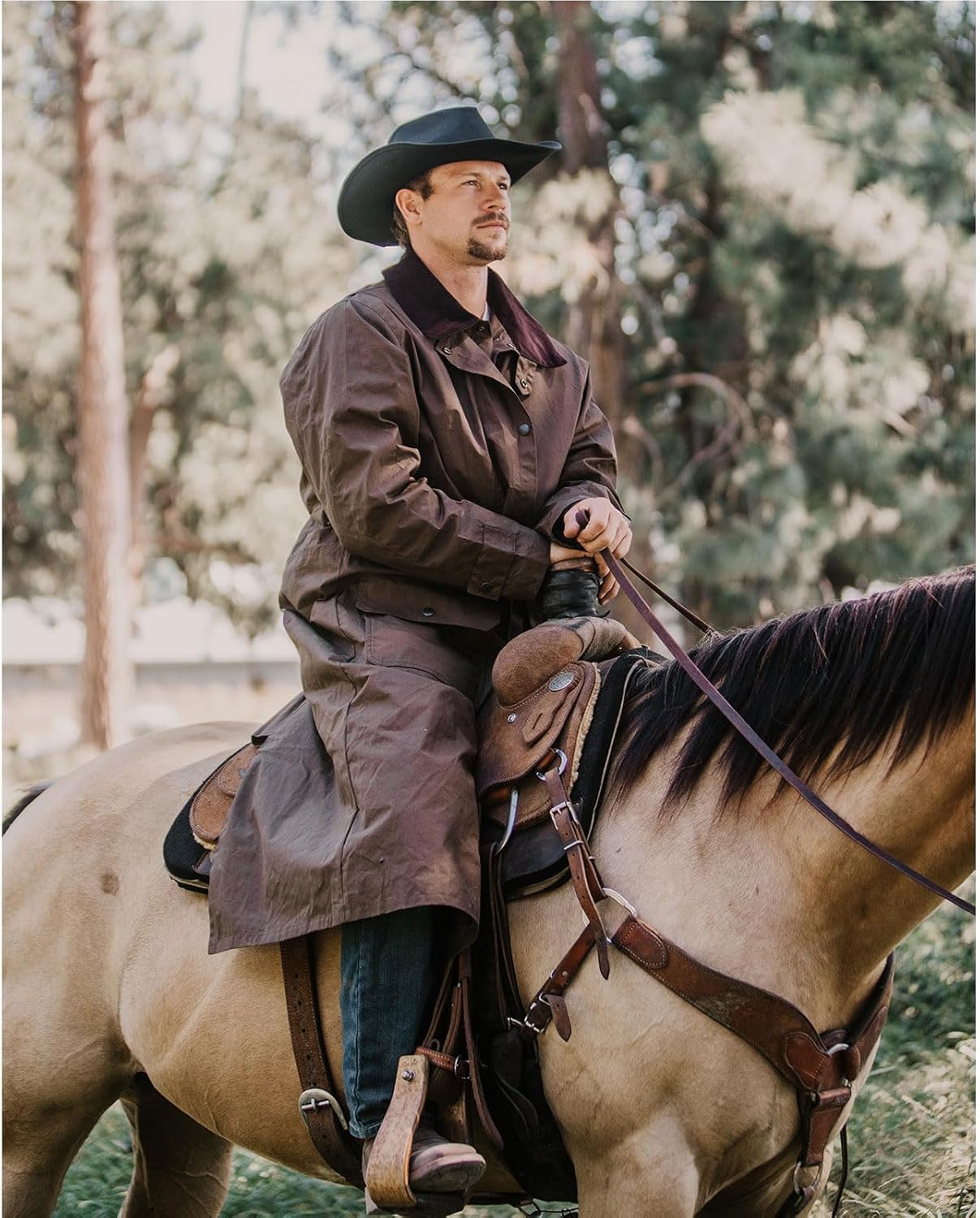 OUTBACK TRADING MAN'S WAX COTTON DUSTER Say hello to your new, reliable companion for the toughest of adventures that will help you stand up to the wind and the rain! This Wax Cotton Duster features snap adjustable cuffs, adjustable leg straps, rear saddle gusset, reinforced elbow patches and multiple pockets. FEATURES: - Waterproof & Breathable; - Dual Snap Closure; - Inside Security Pocket; - Concealment Pocket; - Dual Entry Hip Pockets; - Rear Saddle Gusset; - Adjustable Leg Straps; - Storm Flap |Throat Latch; - Snap Adjustable Cuffs; - Reinforced Elbow Patches; - Shell: 100% Cotton; - Lining: 100% Polyester; OUTBACK TRADING BRAND: Outback Trading Company is a leading supplier of all-weather outdoor apparel. Established in 1983, Outback Trading Company stays true to its reputation of producing durable and rugged high performing apparel.