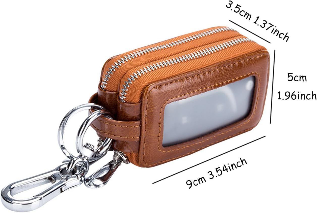 Car Key Chain Bag Double Zipper Leather Protection Key Coin Holder Keyring with Transparent Window