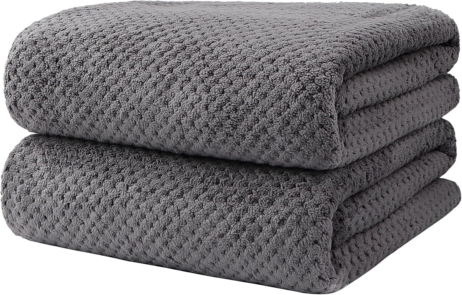 HOMEXCEL Bath Towels Pack of 2, (27 x 54 Inches) Microfiber Ultra Soft Highly Absorbent Bath Towel Set, Lightweight and Quick Drying Towels for Body, Sport, Yoga, SPA, Fitness, Grey