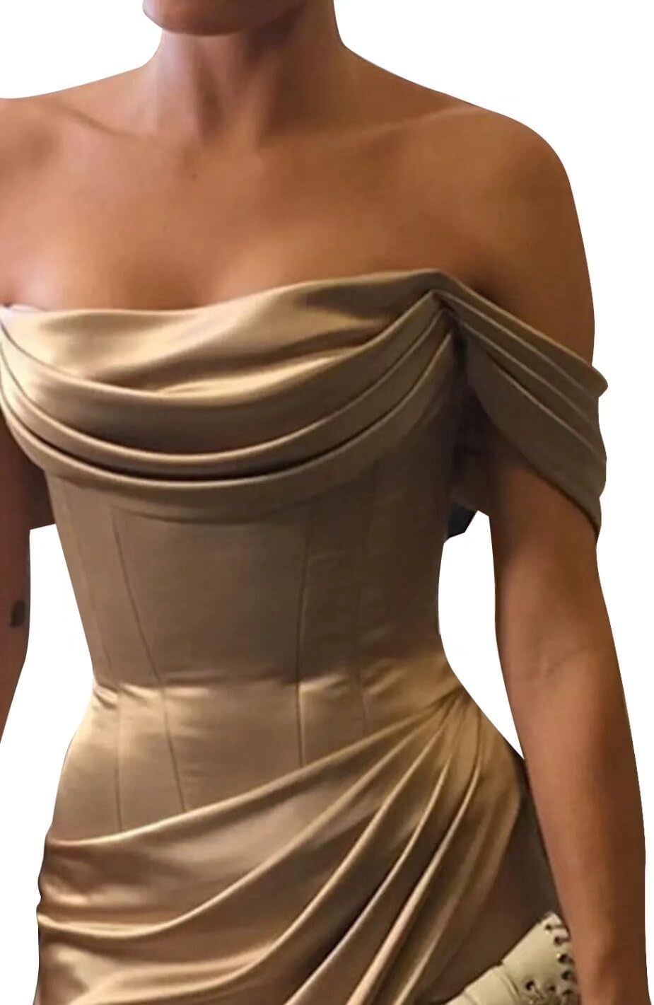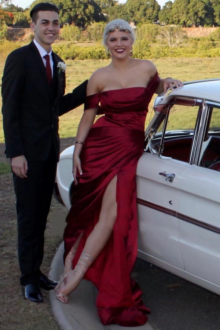 Off The Shoulder Mermaid Prom Dresses for Women Satin Silk Ruched Wrap Formal Evening Gowns with Slit