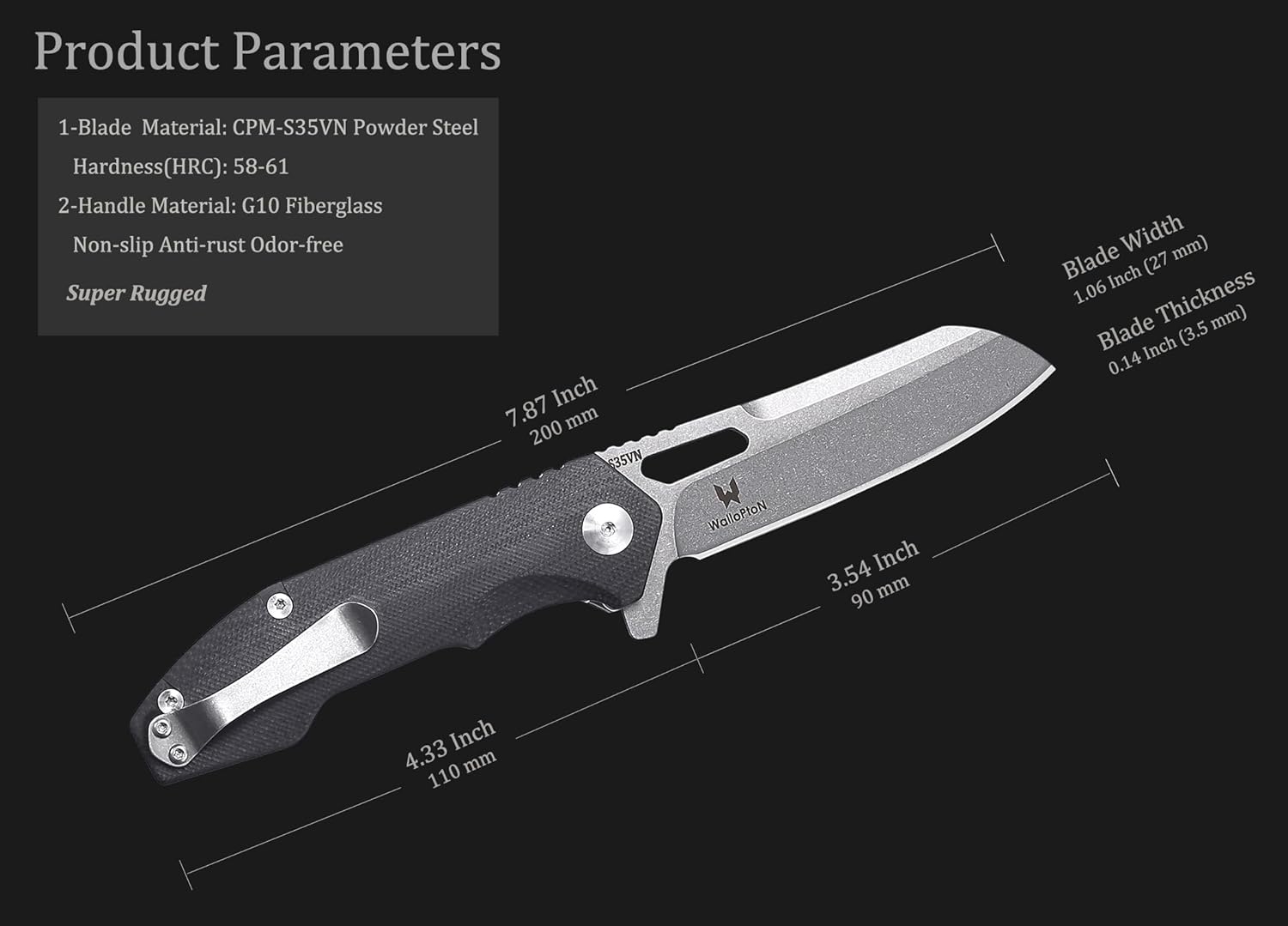 ▶【Sharp S35VN Knife】- High quality CPM-S35VN super steel blade offers best -in-class corrosion resistance, toughness and good edge retention .It is not easily broken or bent owing to the thickness of 0.14 inches (3.5 mm) steel which makes it sturdy enough to handle any extreme environment. It is definitely an ideal option for an everyday carry knife that will stay strong through all of your adventures.