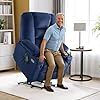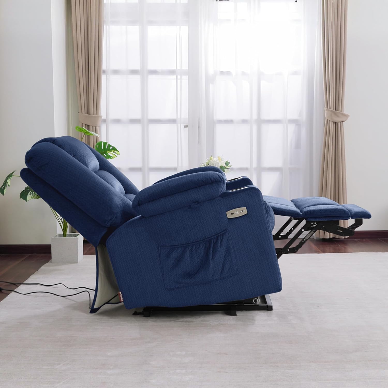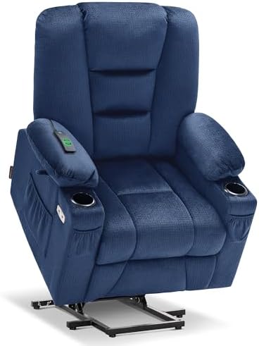 MCombo Power Lift Recliner Chair with Massage and Heat for Elderly People, Cup Holders, USB Ports, Side Pockets, Fabric 7529 (Medium, Navy Blue)