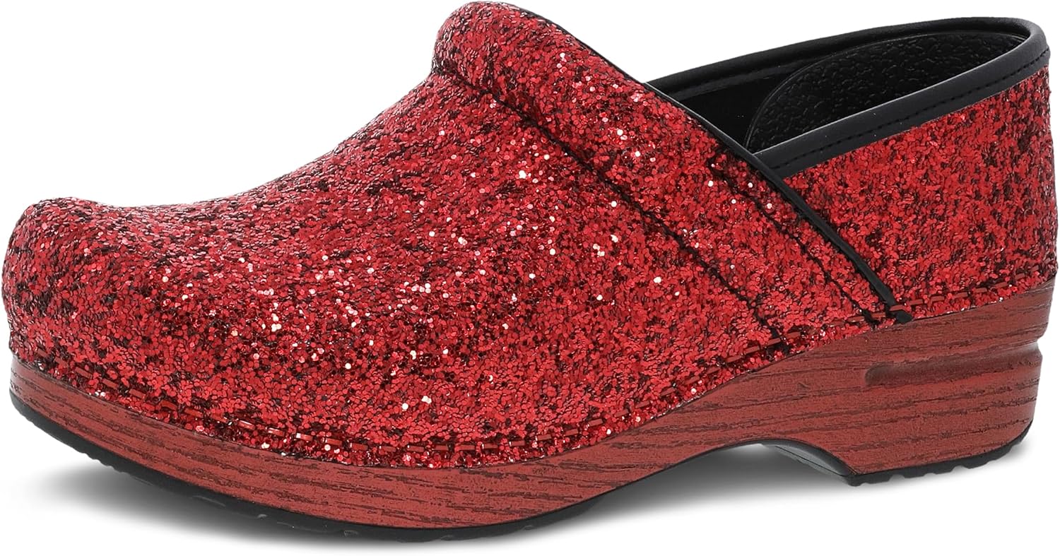 Dansko Professional Glitter Slip-On Clogs for Women – Rocker Sole and Arch Support for Comfort – Shiny and Stylish Glitter Uppers Red Glitter 6.5-7 M US
