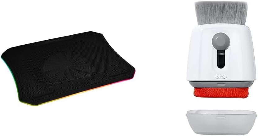 Almohadilla de refrigeración Thermaltake Massive 20 RGB con panel de malla de acero RGB, ventilador único de 200 mm, 10-19 pulgadas, CL-N014‐PL20SW‐A y OXO Good Grips Sweep & Swipe, limpiador para portátiles, blanco, talla única