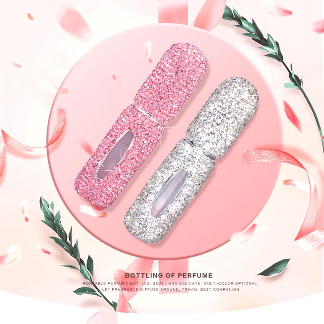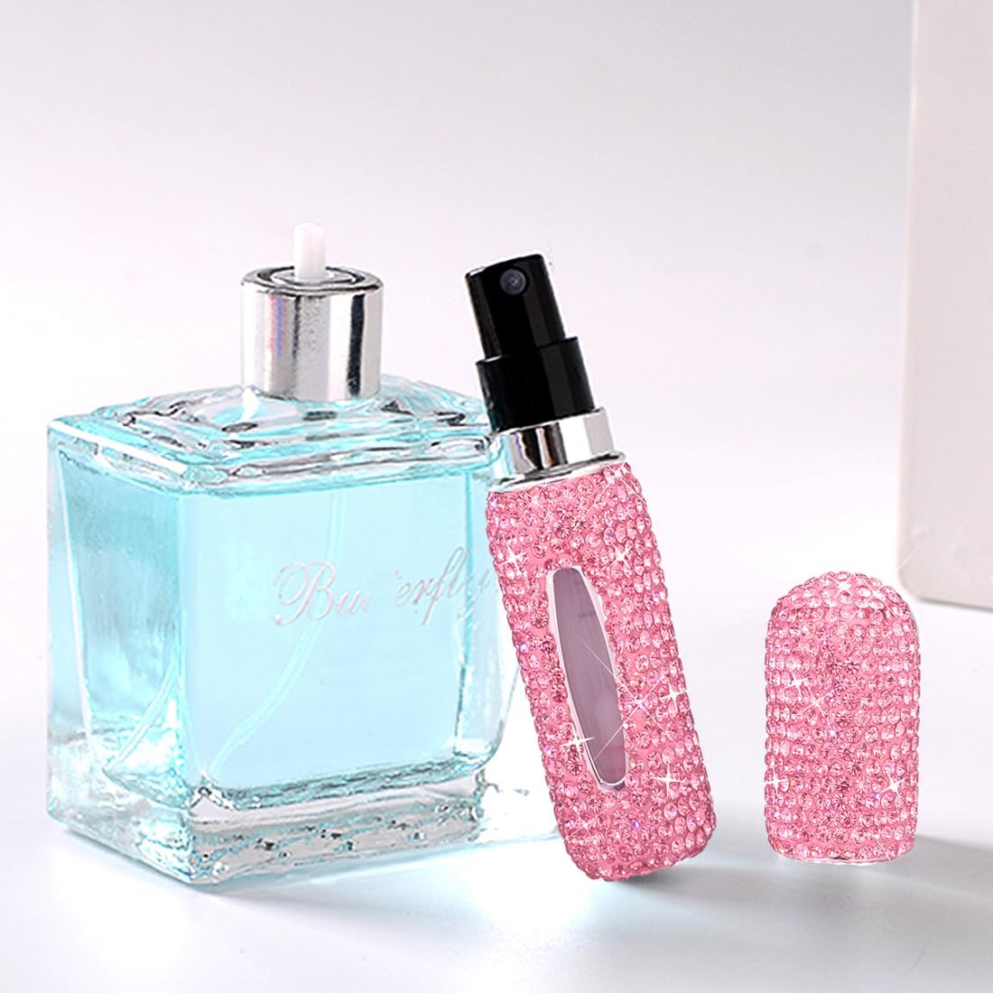 Bot Botella de Spray de Perfume 5ML Rosa con Rhinestones Vacío Portátil de Viaje Fina Neblina Mini Dispensadores de Spray Reutilizables para Perfume, Aceite Esencial