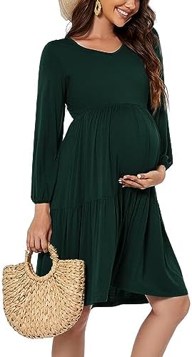 Smallshow Women's Maternity Dress Ruffle Long Sleeve Pregnancy Clothes