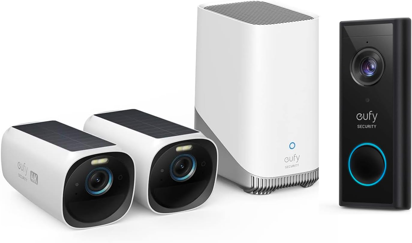 eufy Security S330 eufyCam 3 2-Cam Kit and eufy Security, Wireless Video Doorbell S220 Add-on with 2K Resolution