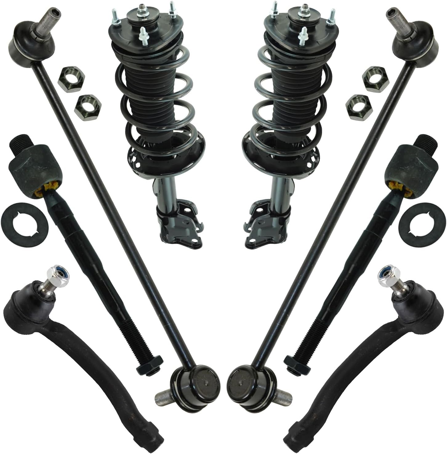 Kit Includes:(2) Front Inner Tie Rods; (2) Front Outer Tie Rods; (2) Front Strut & Spring Assemblies; (2) Front Sway Bar Links