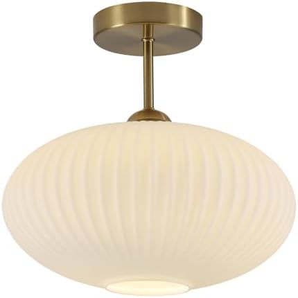 Unique Ribbed Design: The vintage flush mount ceiling light features a brass gold metal deign paired with a classic milk white glass lampshade. Brushed brass hallway ceiling light fixtures gives you a timeless retro vintage touch and a clean modern aesthetic, adds vibrant vibe to any room