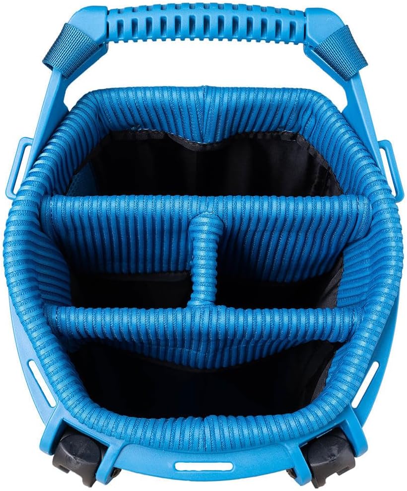 This Sun Mountain 2.5+ Stand Bag is ultra-lightweight, boasting a sturdy plastic top and an X-Strap System for hassle-free carrying and storage. It's equipped with six pockets: a full-length apparel pocket, a velour-lined valuables pocket, a ball pocket with two-way zippers, a beverage pouch, and multiple accessory pockets. Additionally, it comes with a matching rainhood for extra protection.