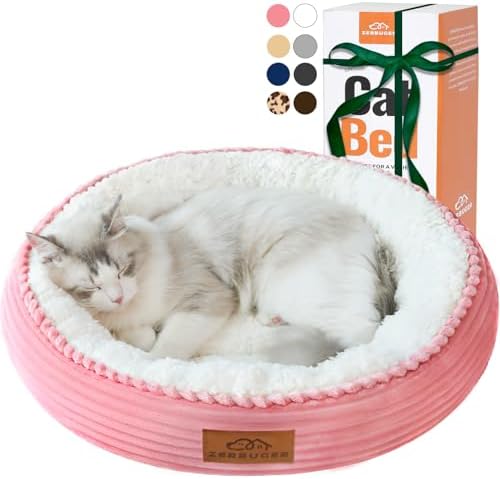 20in Washable Cat Beds for Indoor Cats - Round Donut Pet Bed for Cats, Small Dogs, Puppy, Kitten - Anti-Slip Bottom, Calming Bed Gift - Pink