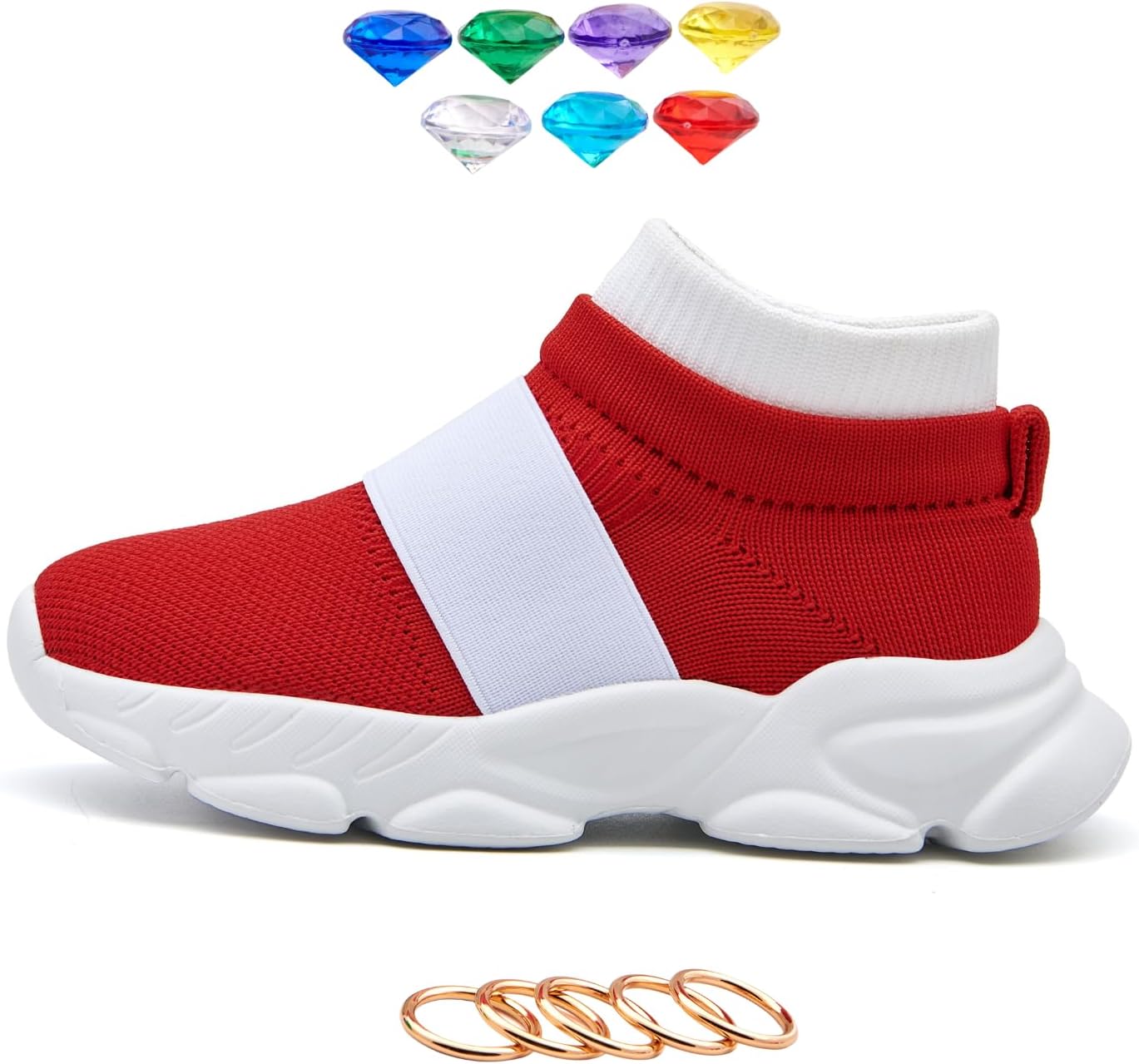 Boy Sneakers Girls Kids Red Shoes Birthday Party Gift with 7 Rings and 5 Gems