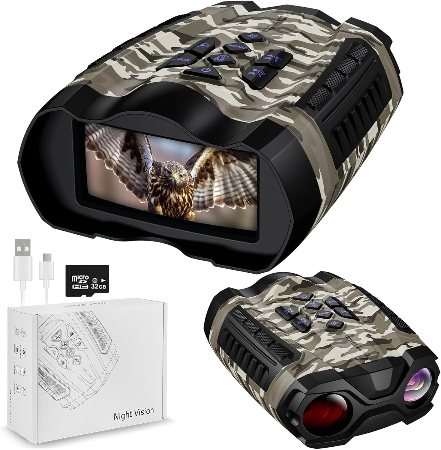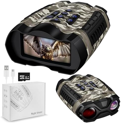 【32GB TF Card and Package Included】: This package includes 1 x Night Vision Goggles, 1 x 32GB TF Card, 1 x Neck Strap, 1 x USB Data Cable, 1 x User Manual, and 1 x Cleaning Cloth. These Night Vision Binoculars are perfect for adults who enjoy outdoor activities such as night fishing, camping and wildlife watching
