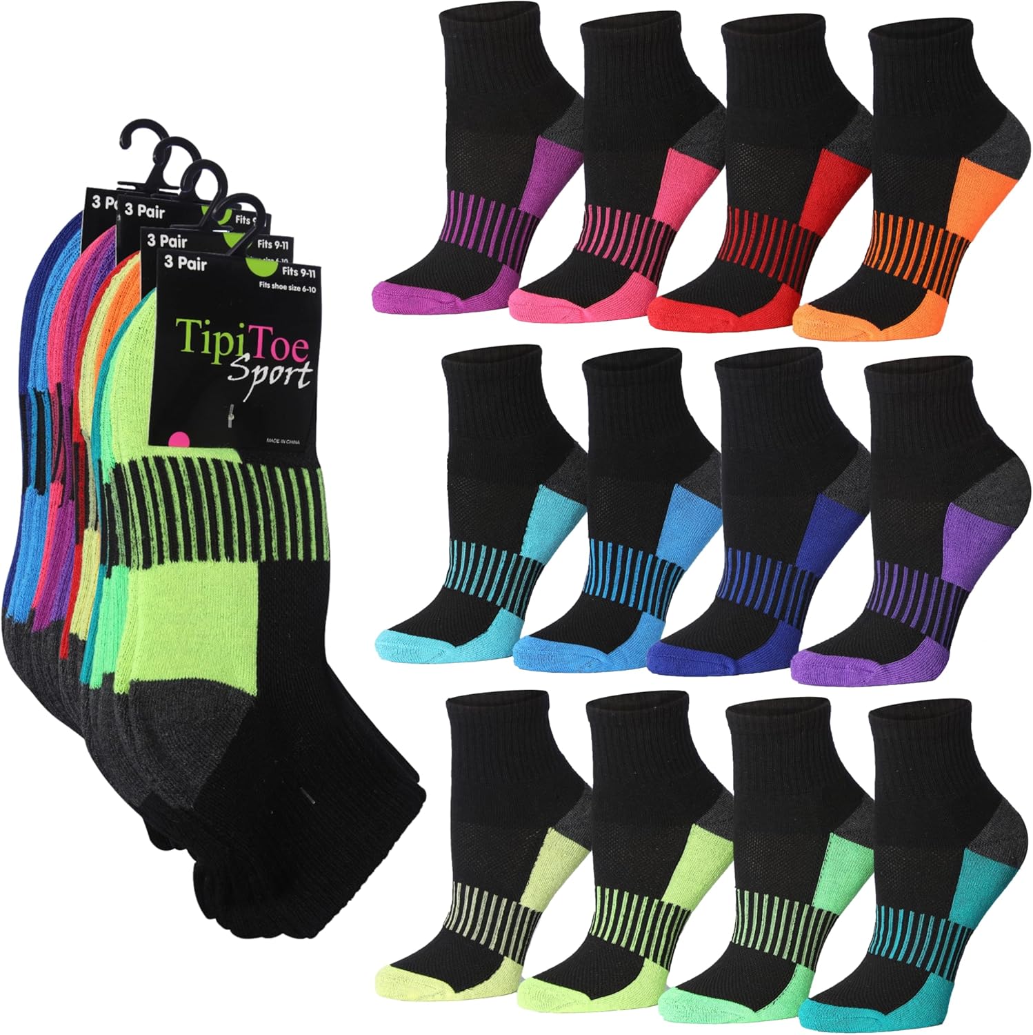 Tipi Toe Women’s 12 Pairs Athletic Ankle Socks – Cushioned Sport Performance for Running & Training Size 9-11