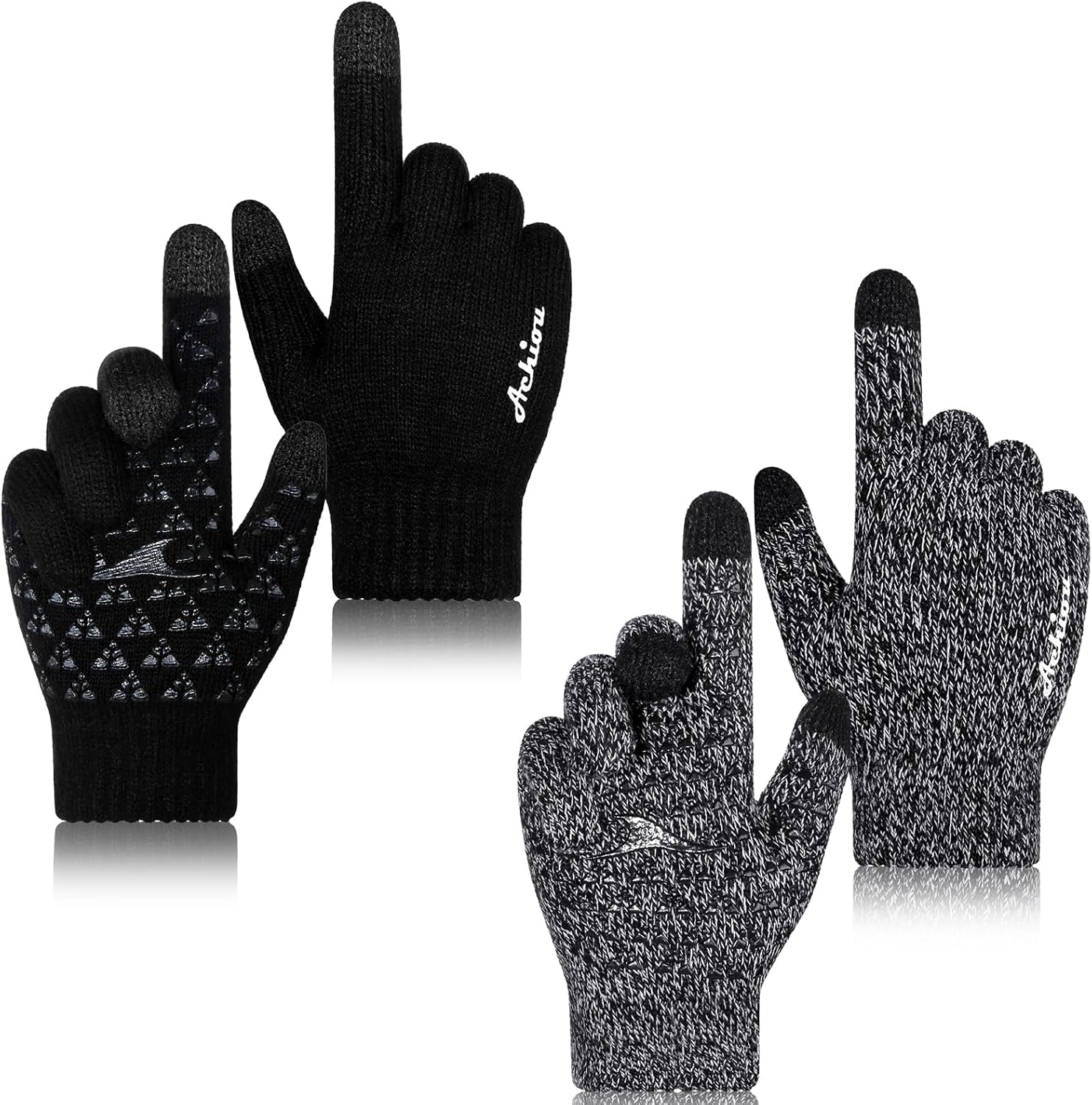 Achiou Winter Gloves for Men Women, 2 Pairs Touch Screen Texting Warm Running Gloves Thermal Soft Knit Lining, Elastic Cuff