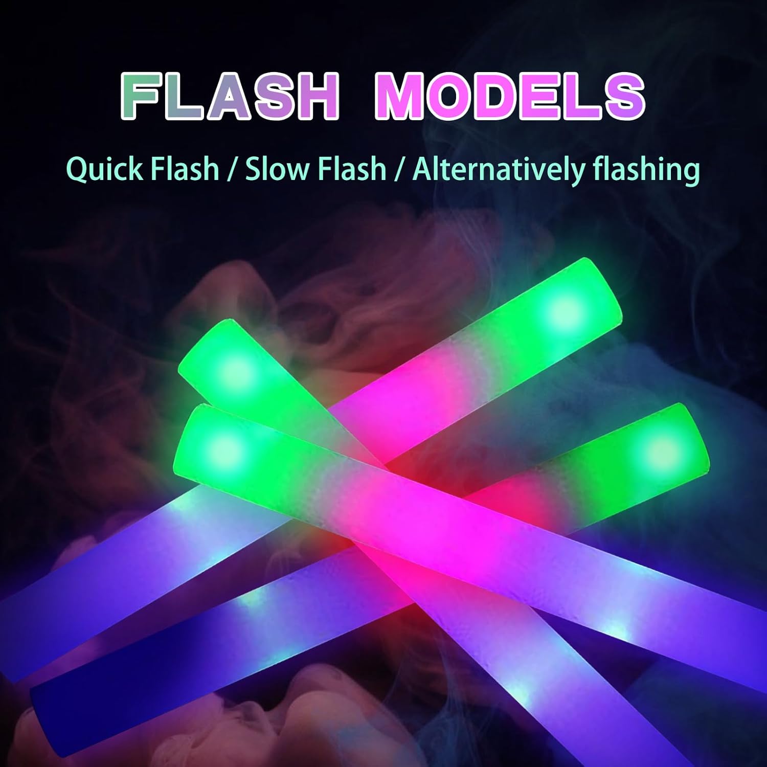 100 Pcs18.5inch Foam Glow Sticks Bulk - 3 Modes Colorful Flashing Led Foam Sticks Glow in The Dark Party Supplies for Christmas Birthday Wedding Party Camping Events Carnival Concert Rave
