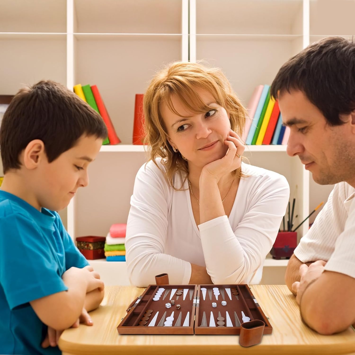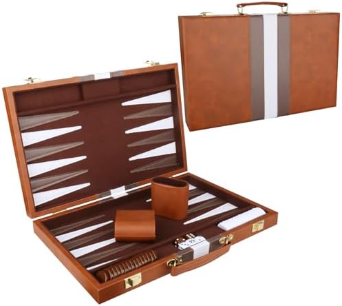Juego de Backgammon - Juego de Tablero Clásico con Estuche de Cuero Premium - Juego de Estrategia de Backgammon Portátil para Viajes para Adultos, Niños - Adecuado como (15 pulgadas, Marrón)