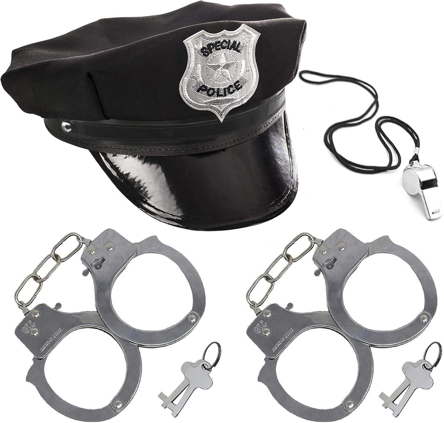 3 Otters Police Hat with Whistle, Handcuffs, and Accessories Set - Fun Kids