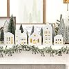 Charming Miniature Christmas Village - Transform your home into a winter wonderland with our lighted white Christmas village houses and mini Xmas trees, creating a magical scene reminiscent of a snowy Christmas Eve.