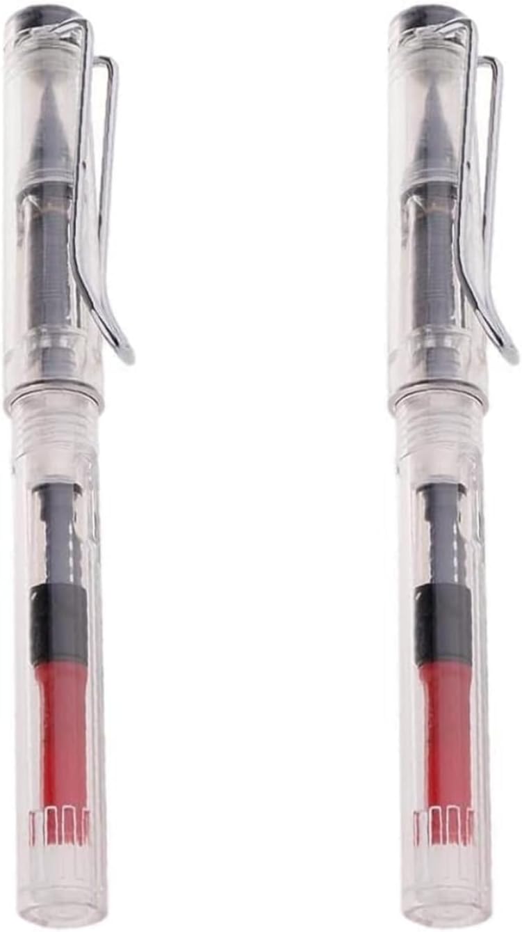 2Pcs Black Fountain Ink Brush Pen Refillable,Flexible Brush Tip for lettering, calligraphy, illustration, art, writing, sketching Chinese Japanese Sumi Calligraphy Painting Drawing Clear Pens