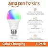 Amazon Basics Smart A19 LED Light Bulb, Color Changing, 9W (60W Equivalent), 800LM, Works with Alexa Only, 2.4 GHz Wi-Fi, No Hub Required, 1 Pack