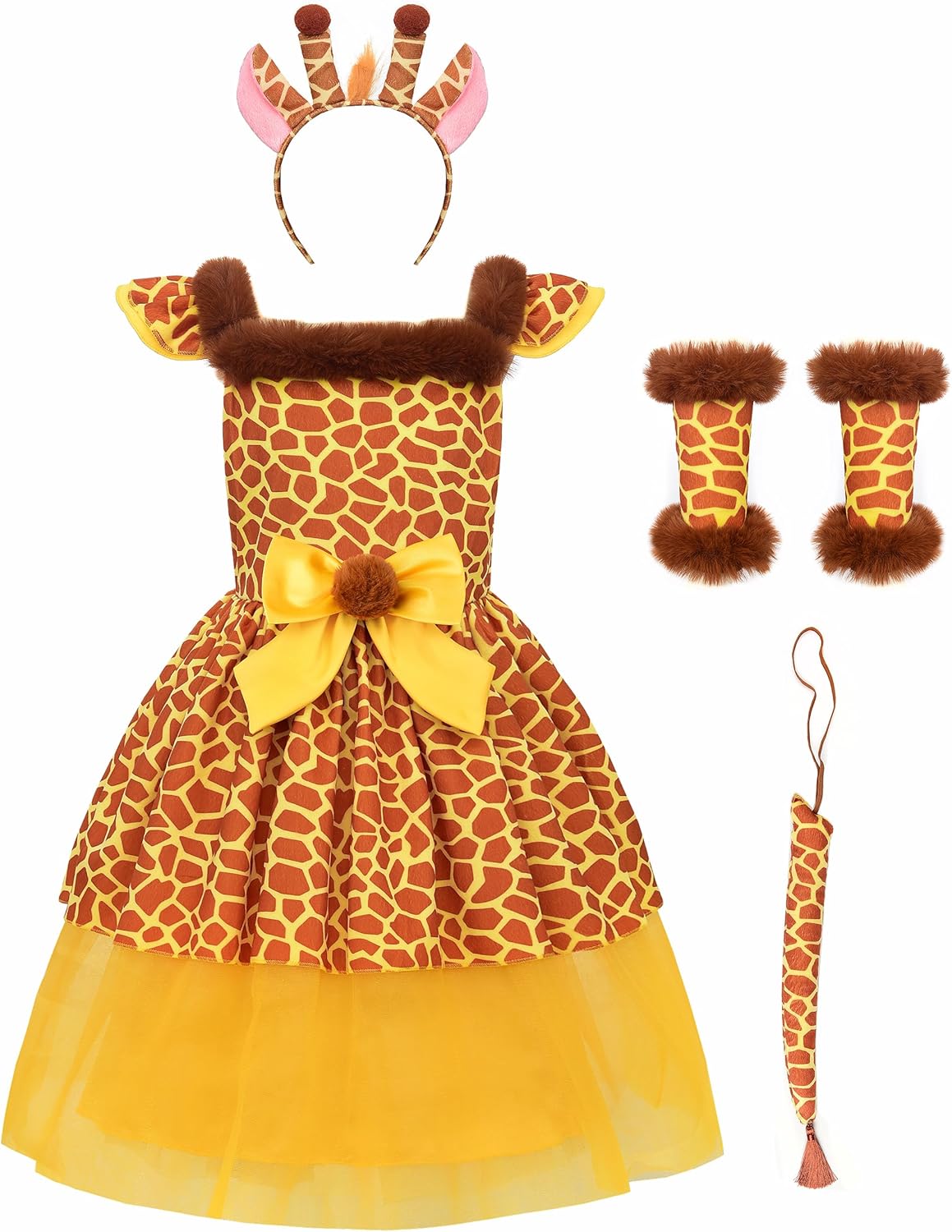 ReliBeauty Giraffe Costume Kids Jungle Party Animal Costume Girls Halloween Animal Fancy Dress with Tail