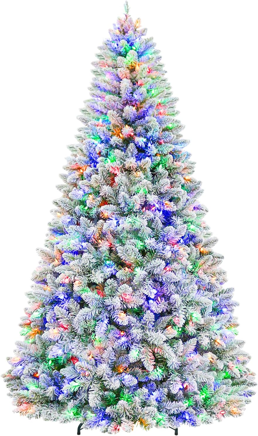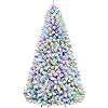 Hykolity 6 ft Prelit Snow Flocked Christmas Tree, 250 Color-Changing LED Lights, 1032 Hinged Branch Tips, 10 Colors, Full Snowy Appearance, Easy Assembly, Metal Stand