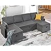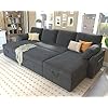 VanAcc Sleeper Sofa, 110 inch Oversize - 2 in 1 Pull Out Bed, Sectional Sleeper Sofa with Double Storage Chaise for Living Room, Grey Linen Couch
