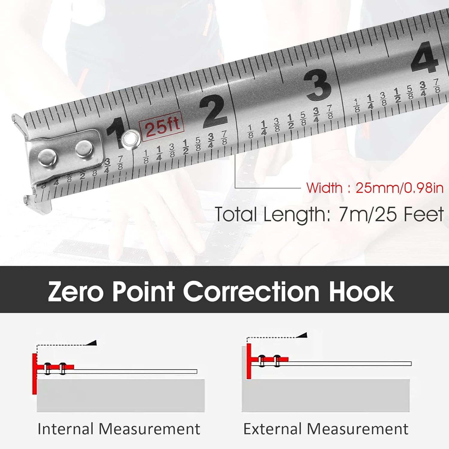 [Double-sided Scale] The measuring tape is printed with clear and accurate scales on the double sides to meet your different measuring needs. The tape supports taking the inside or outside of the ruler hook as the reference point to ensure the accuracy of the measured data.