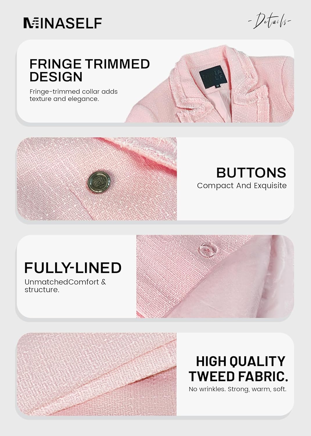 Mina Self 2025 Fall Women's Tweed Blazer Jacket - Fashion Warm Fully Lined Elegant Trendy Casual Cute Coat with Pockets