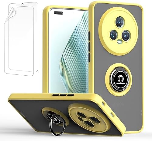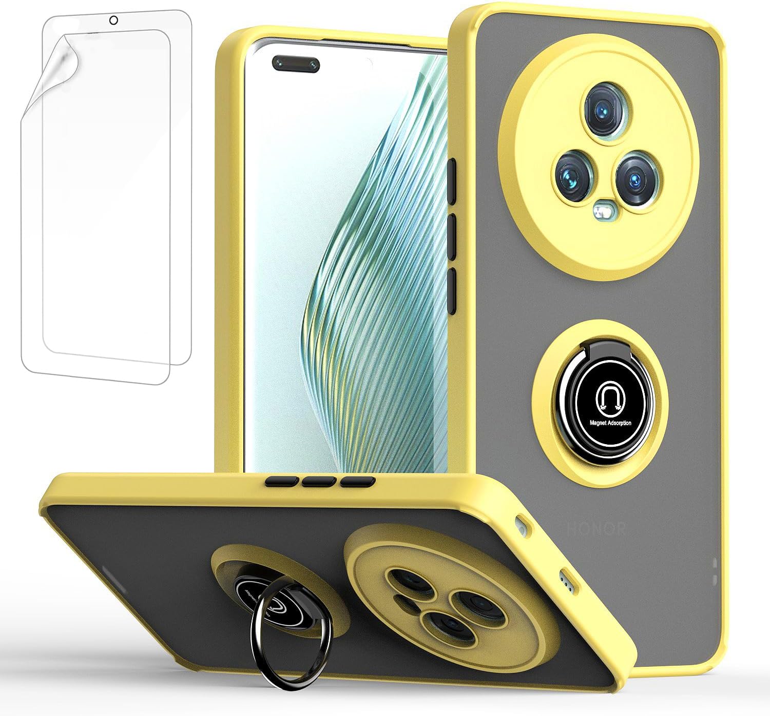 Case for Honor Magic 5 Pro 5G with Ring Kickstand - Soft Skin Feeling - Semitransparent - Anti-Scratch Liquid Silicone Shock-Absorbing (Yellow, Magic 5 Pro)