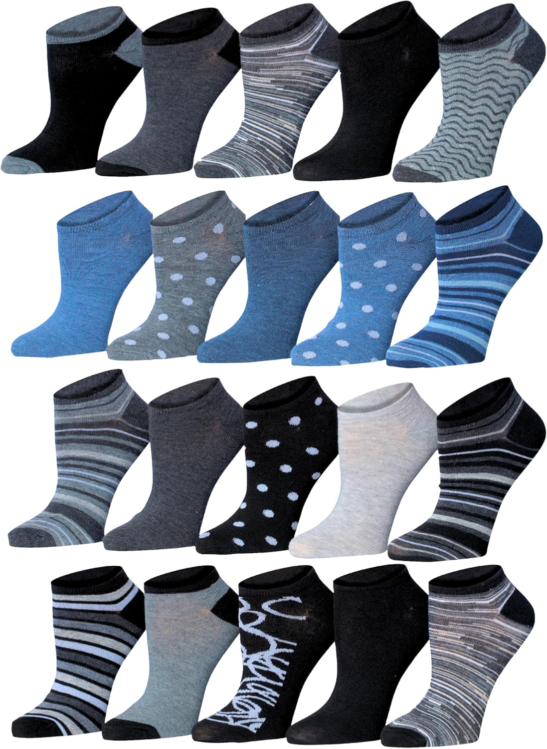 Tipi Toe Women’s Low Cut Socks – 20 Pairs Colorful Patterned Socks, Soft & Breathable Everyday Fit (Size 9-11, 10-13)