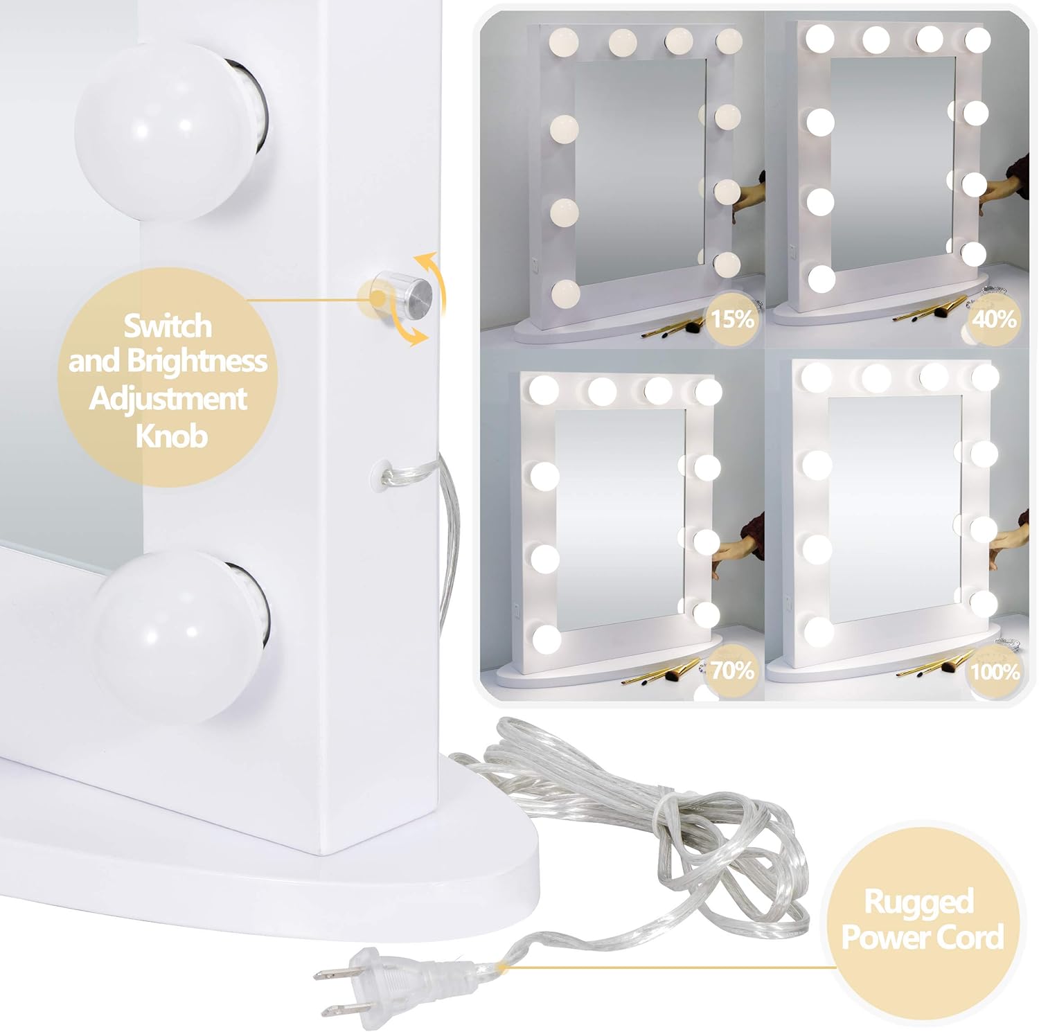 【Professional Makeup Mirror】- Professionally crafted to give you a professionally illuminated makeup mirror that lights up your entire room, casts a non-flickering, natural, even light on your face without any unwanted shadows, and provides professional color-corrected light for your makeup. It's perfect for hair and makeup.