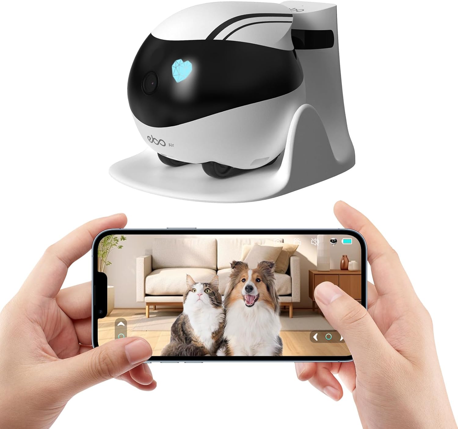 Rocon Ebo AIR Pet Robot Camera, 2 Way Talk, Night Vision, App Remote Control, Indoor Security Camera, Movable Cam for Dog/Cat/Baby, SD Card