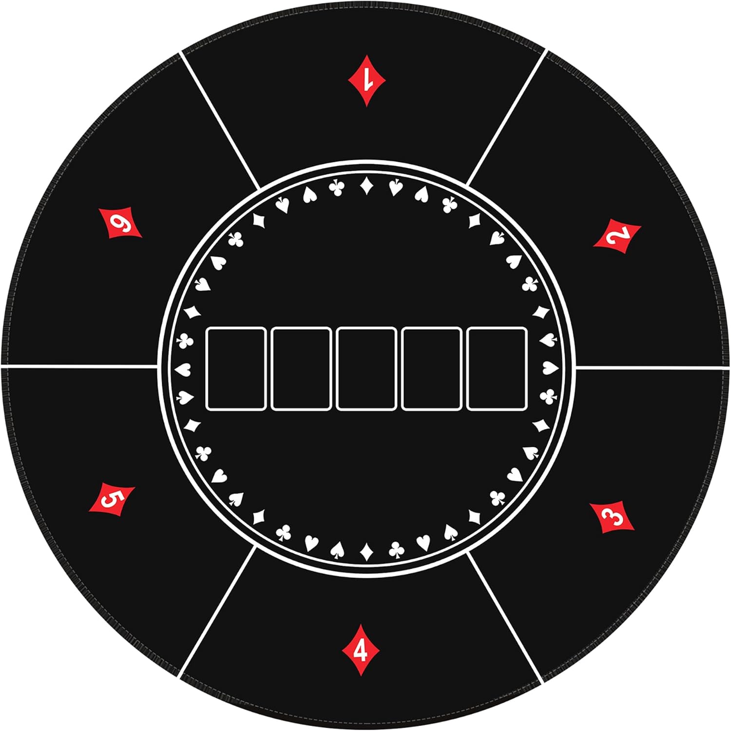 Premium Mat: The Texas Hold'em tabletop mat is made from non-slip high elasticity rubber and multi-spandex materials; features carefully sublimated print layout (not traditional silk screen printed); stitched edges to prevent wear; ensures prolonged use without deformation and degumming
