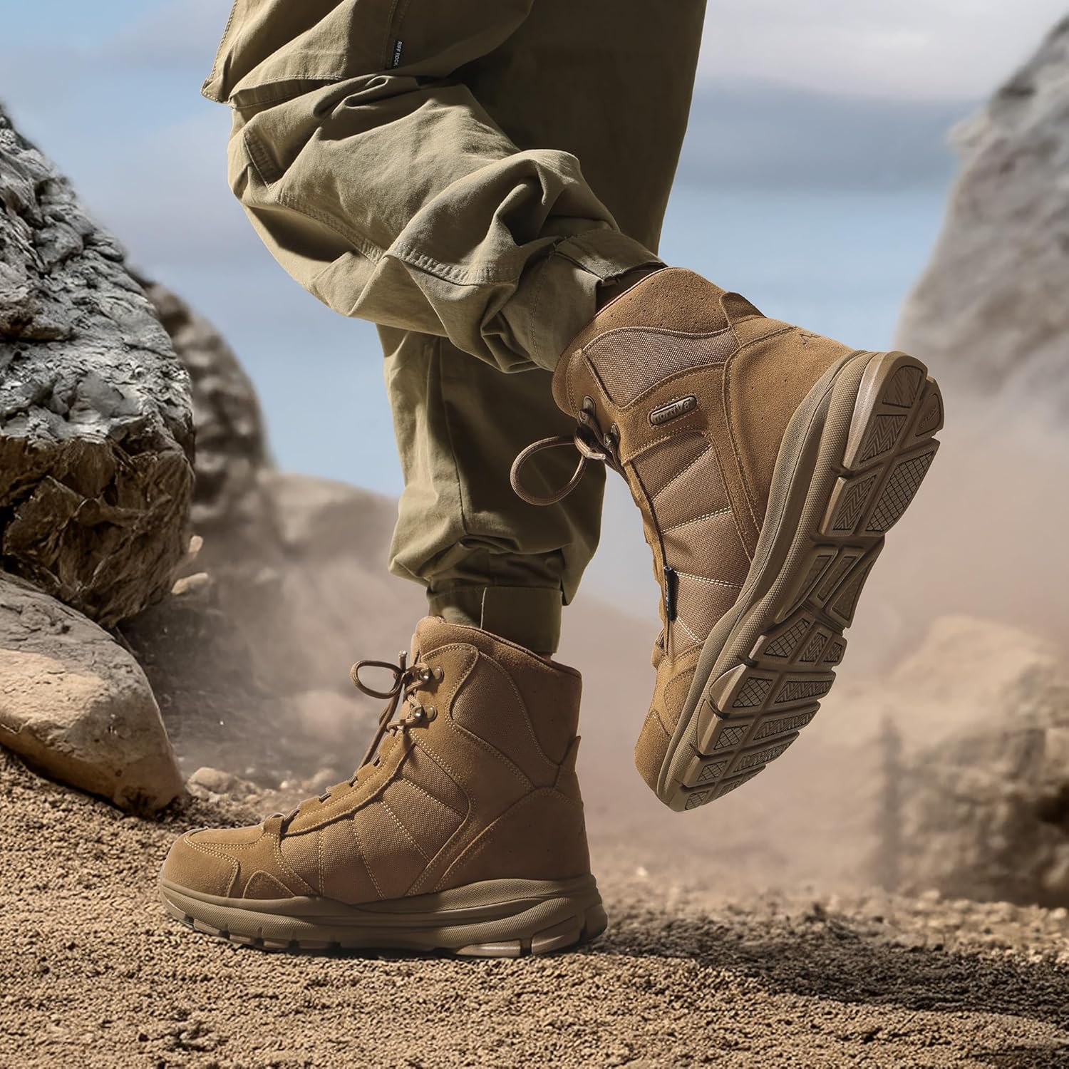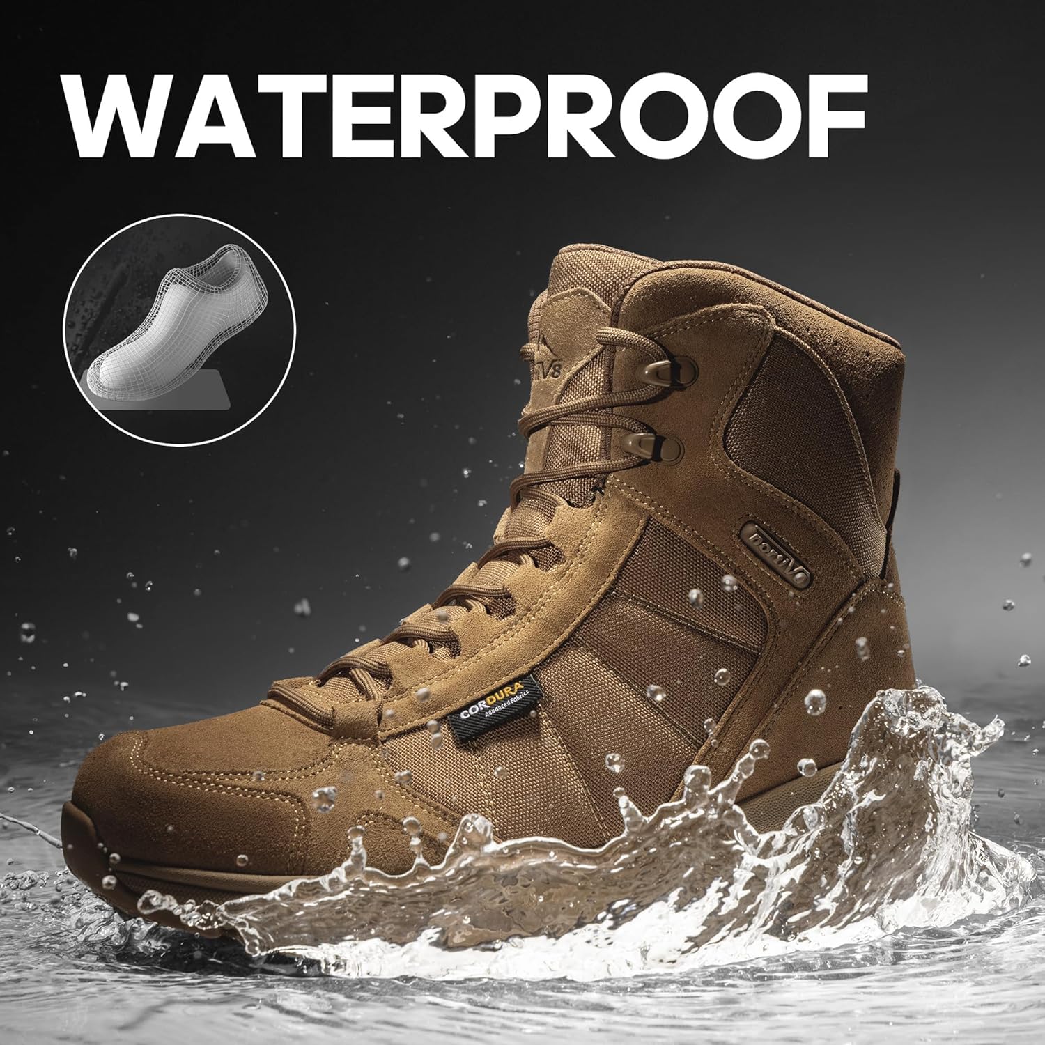 NORTIV 8 Men's Waterproof Lightweight Military Tactical Work Boots Outdoor Hiking Combat Motorcycle Boots,Size 10,Waterproof-Brown,SNMT222M