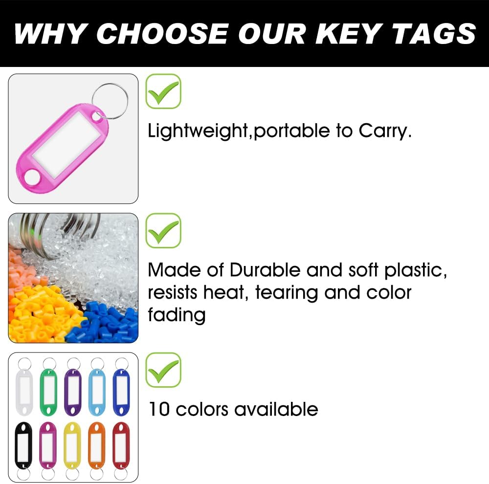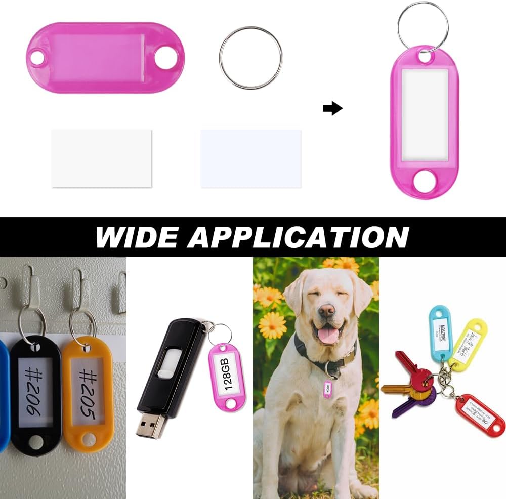 🏷 Ventana de etiqueta conveniente: Nuestras etiquetas de identificación de llaves de plástico tienen un diseño de ventana de etiqueta con una inserción de papel removible. Etiqueta fácilmente sus llaves y proteja las inserciones con una cubierta transparente.
